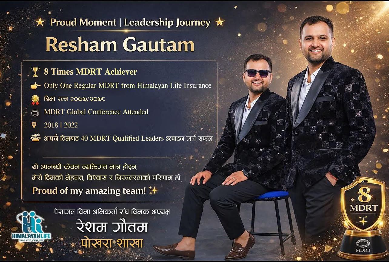 Kathmandu. Resham Gautam of Himalayan Life Insurance has been selected for the eighth consecutive time for the international platform of agents in the world’s MDRT-2026.