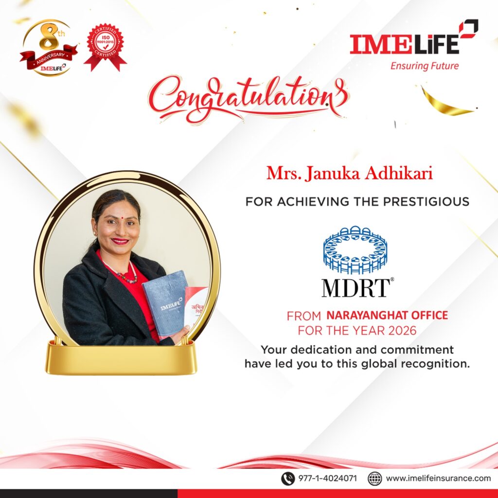 Kathmandu. Resham Gautam of Himalayan Life Insurance has been selected for the eighth consecutive time for the international platform of agents in the world’s MDRT-2026.
