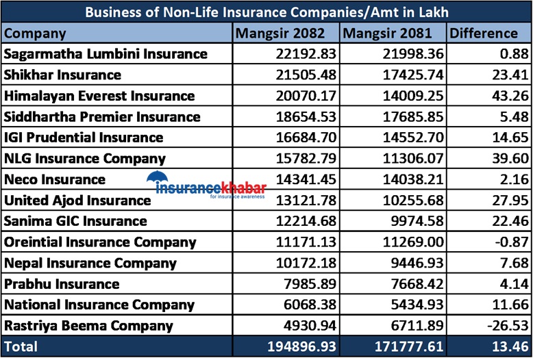 Kathmandu. Non-life insurers in the current fiscal year 2082. In the first five months of 2018, the company has been able to do business of about Rs 19.5 billion.